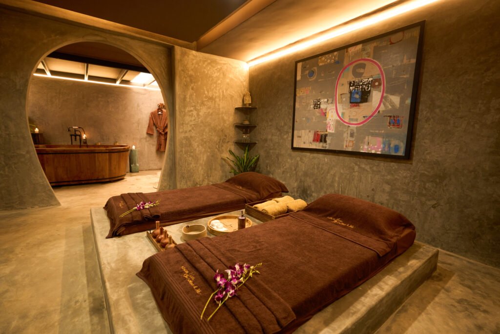 The spa occupies dedicated levels within the bungalow and is anchored by three couples’ suites, each centred around distinct rituals. The sanctuary also features two steam rooms, a red-light sauna, a hammam, an ice bath, two skin treatment rooms, two Korean scalp therapy rooms, and an exclusive VIP suite. An internal lift ensures fluid movement between floors, reinforcing the sense of cohesion throughout the residence.