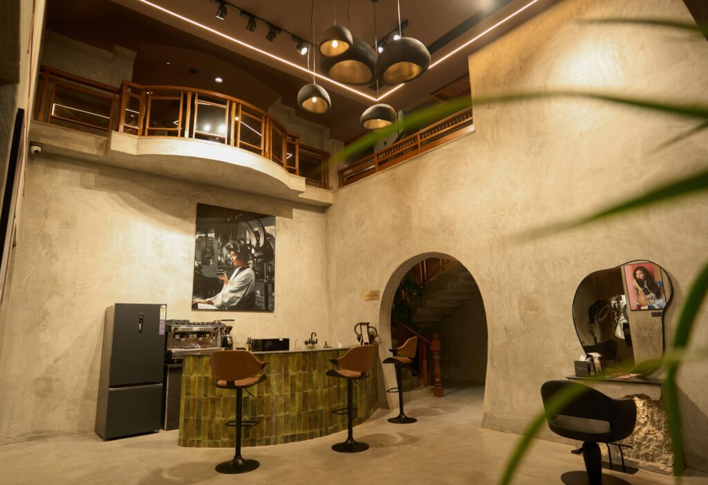 Set in Jubilee Hills, widely regarded as Hyderabad’s cultural nucleus, the bungalow balances creative vibrancy with discreet privacy. Designed by RII Arc, the space reinterprets Florian Hurel’s signature cement textures through a restrained monochromatic palette and hand-finished surfaces. Soft curves and sculpted niches replace rigid geometry, lending the interiors a fluid, almost organic quality. Indirect lighting enhances depth and warmth, creating an atmosphere that feels composed, intimate, and quietly luxurious without relying on high-gloss finishes.