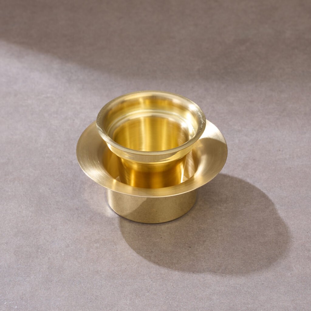 The P•TAL Davara Set honours this tradition while introducing thoughtful design refinements. The hammered brass surfaces reflect the craft of traditional thatheras, while the tumbler and davara’s shapes are engineered for the smooth back-and-forth pour that creates the signature froth. The set’s proportions, ergonomic design, and stackable form make it practical for everyday use, while the brass retains heat evenly and enhances the coffee’s texture and flavor.