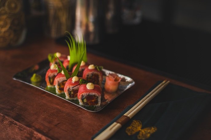 The menu moves across cold plates, dumplings and rolls, Indian small plates and grills designed for sharing. Highlights include Fenny Cured Salmon and White Fish Chilli Mango & Passionfruit Ceviche, alongside small plates such as Raspberry Dahi Puri and Prawn Shu Mai. From the grills, dishes like Thai Style Thigh Chicken and Rawa Snapper sit alongside larger plates including Goat Meat Khichdi and Seared Chicken Green Curry, bringing together coastal ingredients with global influences.