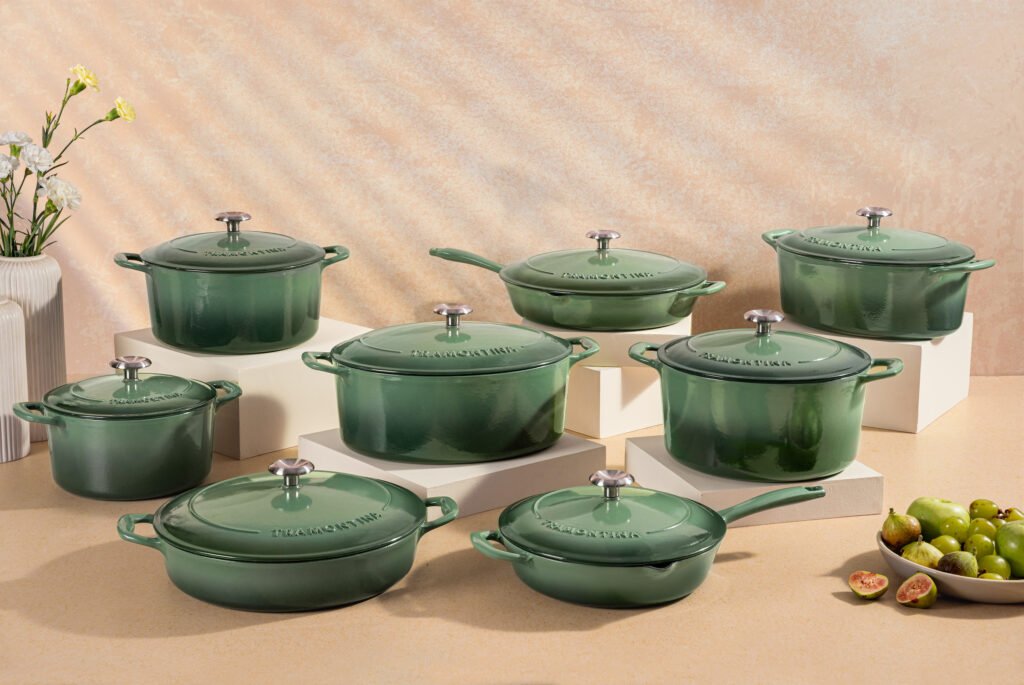 The collection includes frypans, braisers, round and oval casseroles that are versatile pieces perfect for slow-cooked curries, biryanis, hearty stews or even celebratory roasts.